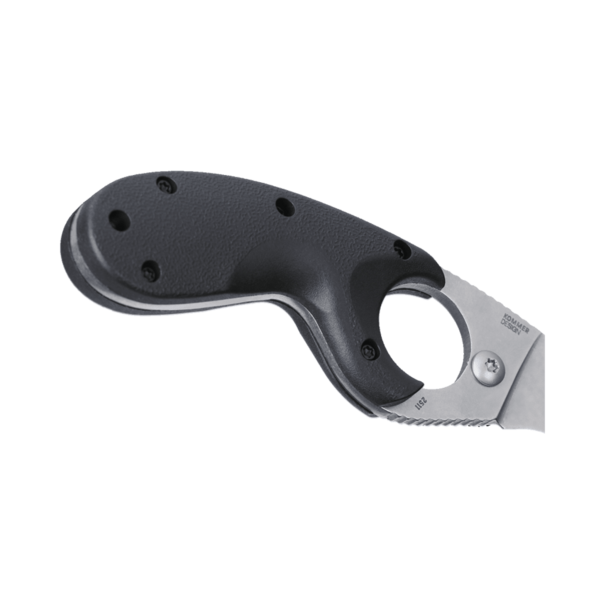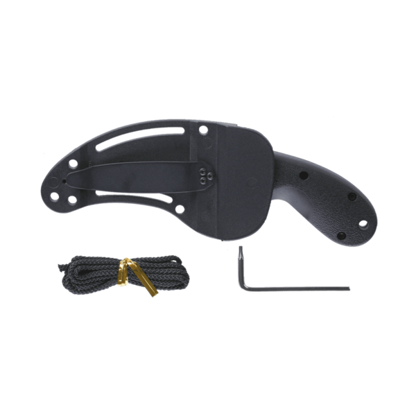 A favorite among whitewater rafters, water sports enthusiasts, and emergency response personnel, the Bear Claw™ is a compact fixed blade knife with a blunt tip, preventing point penetration and making it a safer carry - especially around rafts and inflatables. The hawkbill blade is made with corrosion-resistant steel and lined with Veff Serrations that deliver effortless cuts, making quick work of ropes and straps. The textured handle has a finger retention hole that makes the Bear Claw™ knife easy to hold onto in wet conditions, while the sheath comes with multiple mounting options for quick access in emergency situations - so you can focus on the task at hand.