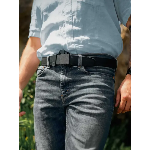 Perfect for appendix carry, the Contender uses their compact Supreme buckle (1 1/2" x 1 11/16"), freeing up valuable real estate up front while ensuring a sleek, low-profile setup. With our trusted PreciseFit™ ratchet system, you'll get a micro-adjustable, dialed-in fit every time - whether you're carrying front and center, strong side, or moving all day on the job.