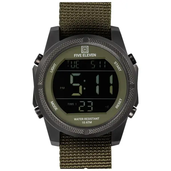 The Division Digital watch features a rugged stainless steel case (44mm) with a tonal IP coating and mineral crystal face. Four buttons give you control of the light, modes and feature start/stop/reset. The watch features day/date displays with 12 or 24 hour time and dual time zones. An EL backlight, chronograph, timers (2) and alarms (4) provide additional functionality. Water resistant to 100M/330FT/10ATM. Removable 22mm webbing band.