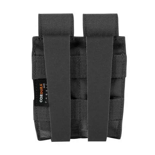 Double magazine pouch for pistol magazines. MOLLE Reverse System. Requires 2 MOLLE loops. CORDURA® 700 den (Multicam 500 den). Full lid closure.