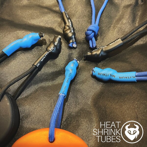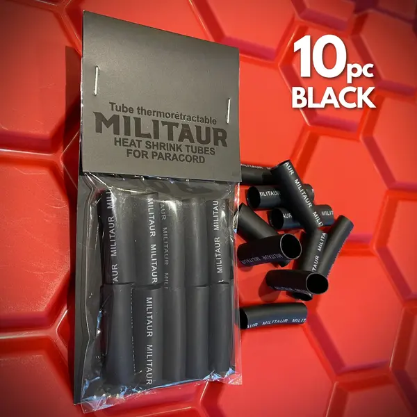 The Militaur Heat Shrink Tubes are used to permanently combine the knotted portion of a paracord into a tightly sealed casing. Their tubes are dual-walled with an adhesive lining, which is deisgned for 550 knotted paracord.