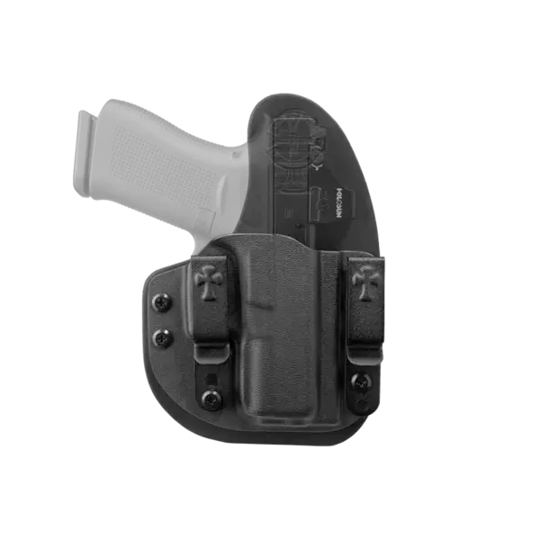 All Reckoning holsters come with IWB clips attached and OWB clips included with the order. Some firearms will not get the trigger guard retention device such as but not limited to; Springfield Armory, Echelon and 911, Faxon FX19, Sig P238, Ruger LCP II and LCP Max, Bond Arms, and Kimber Evo and Micro 9mm.