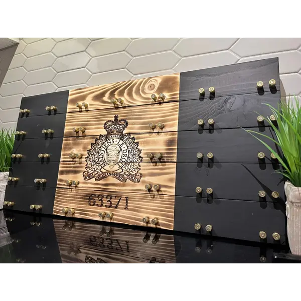 This display comes standard with a 6" x 6" Police Crest. If you wish to have a different logo or maple leaf added to the display instead of a police crest, please be sure to include that in the special field.