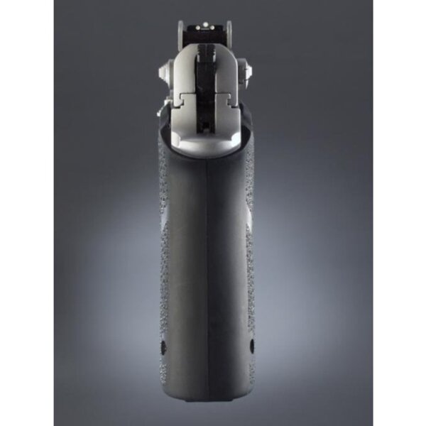 Their grips are a two piece that replaces the one piece stock grip. These grips are a straight backstrap design that installs using a mainspring retainer and screws which come with the grip. The mainspring retainer is pinned into position with the pin that holds the stock grip on. The mainspring retainer provides the threaded bosses that the grip panels screw into.