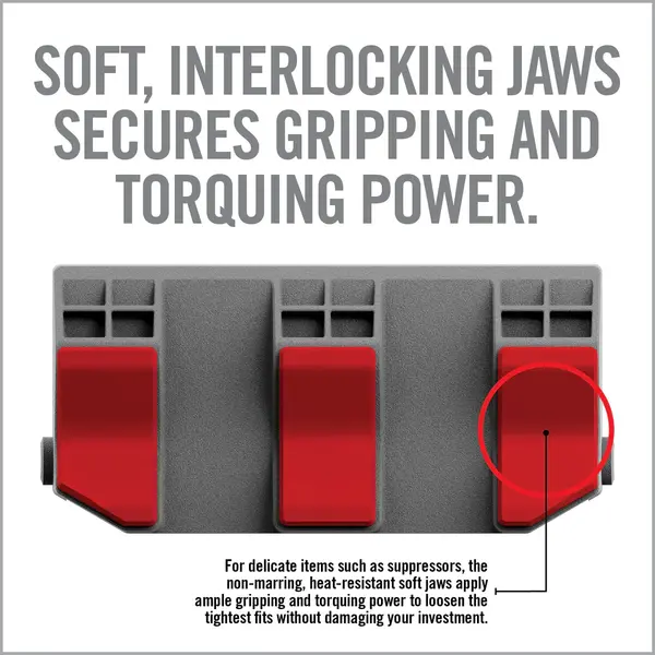 The Smart-Jaws – Tube-Fit Sleeves for Master Gun Vise - revoluntionary tools designed to secure cylindrical objects with precision and ease. These upgraded vise jaws are engineered to provide an unyielding grip on suppressors, PVC, cast-iron pipe and all types of tubing. The dual-sided design offers two distinct gripping surfaces tailored for different applications. For delicate items like suppressors, the rubberized V-shaped surface provides non-marring and heat-resistant support that ensures ample gripping power without damaging your investment. When working with robust materials such as cast-iron pipe or steel tubing where marring is not a concern simply flip the jaws to reveal a metal V-shaped surface that delivers an ultiamte vice-like grip. Designed specifically for use with Master Gun Vise, these sleeves can effectively hold up to 3.75" diameters making them versatile tools in securing various sizes of cylindrical objects during maintenence or modification tasks.