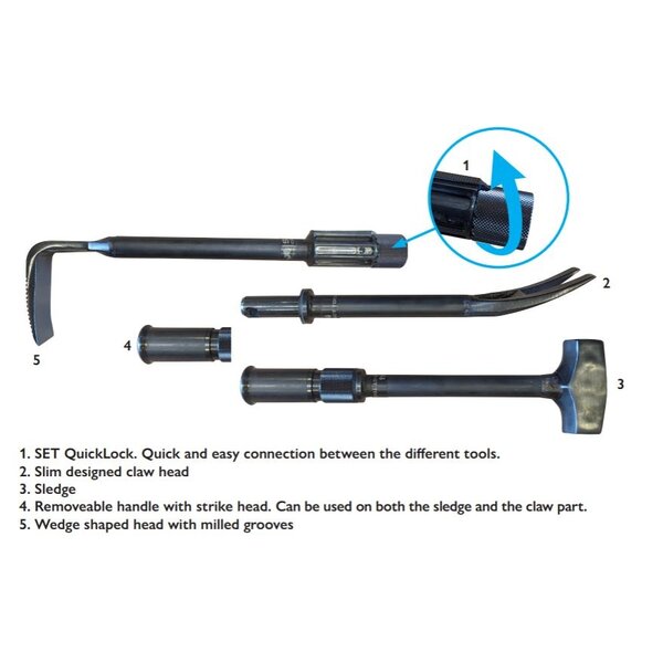 • The removeable handle with striking head can be used on both the sledge and the claw.