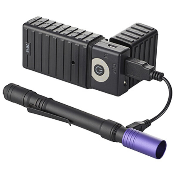 A sleek, compact, USB rechargeable penlight with an ultraviolet LED for detection of engine or HVAC leaks, detecting fraudulent documents, or for forensic investigations. Allows you the flexibility of charging on-the-go using the included USB cord or optional AC wall adapter.